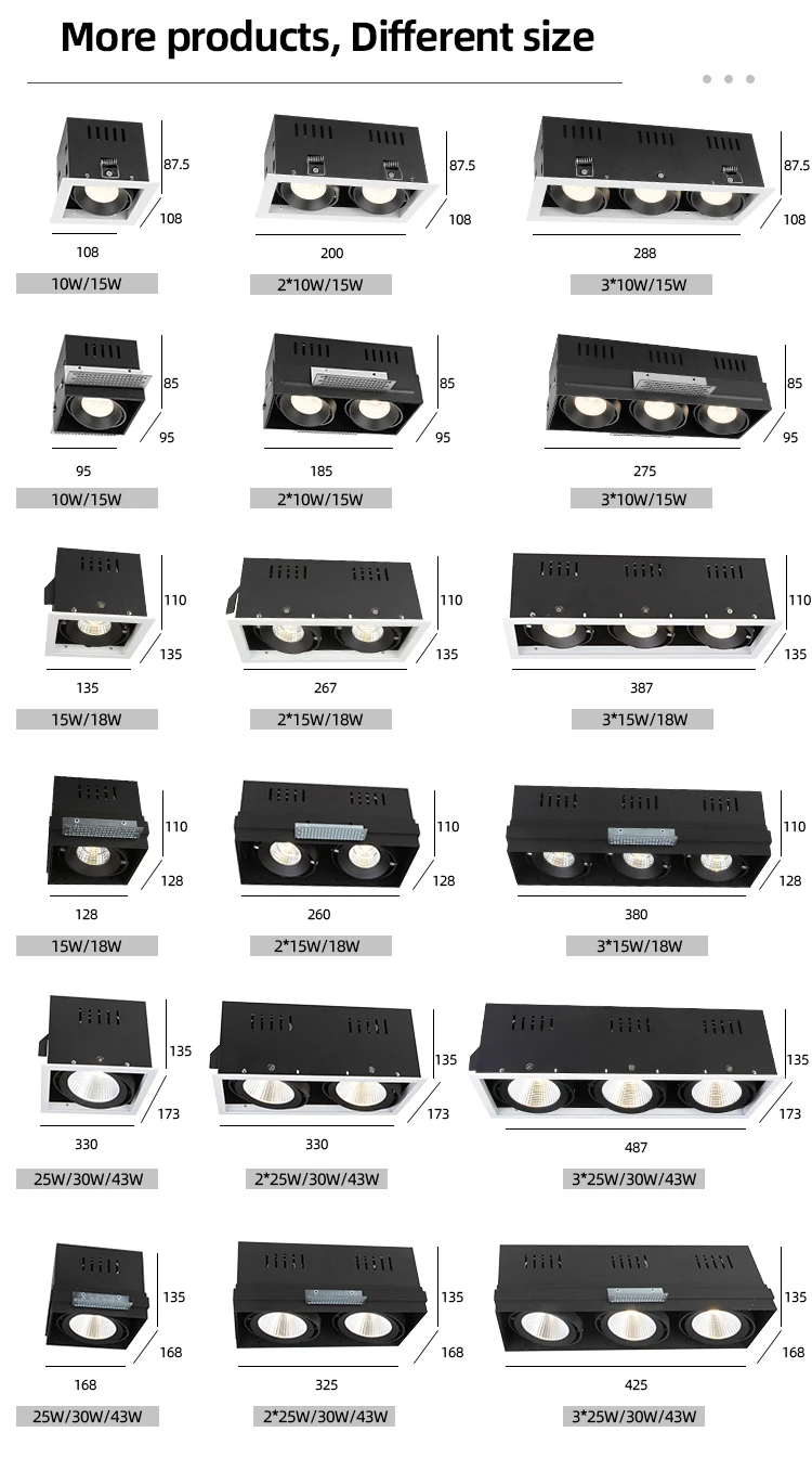 Квадратный потолочный встраиваемый антибликовый светодиодный светильник, точечный Регулируемый 7 Вт 12 Вт 2x7 Вт 2x12 Вт COB Grillie светильник US $4.50-$6.20