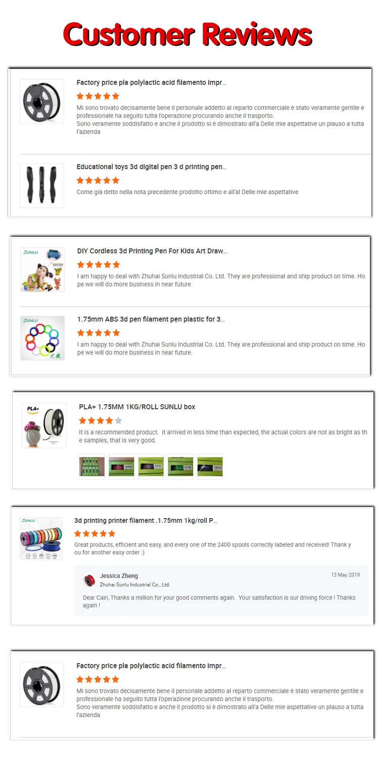A: SUNLU is a direct factory with BSCI& SGS, TUV proved.