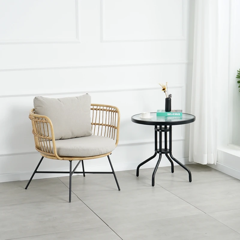 Nordic Indoor Outdoor Furniture Patio Lounge Accent Peacock Woven Wicker Table and Chair Set Luxury Antique Cane Rattan