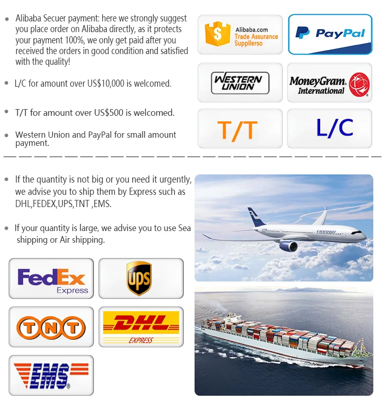 Accepted Payment Type: T/T,L/C,D/P D/A,MoneyGram,Credit Card,PayPal,Western Union,Cash,Escrow;
