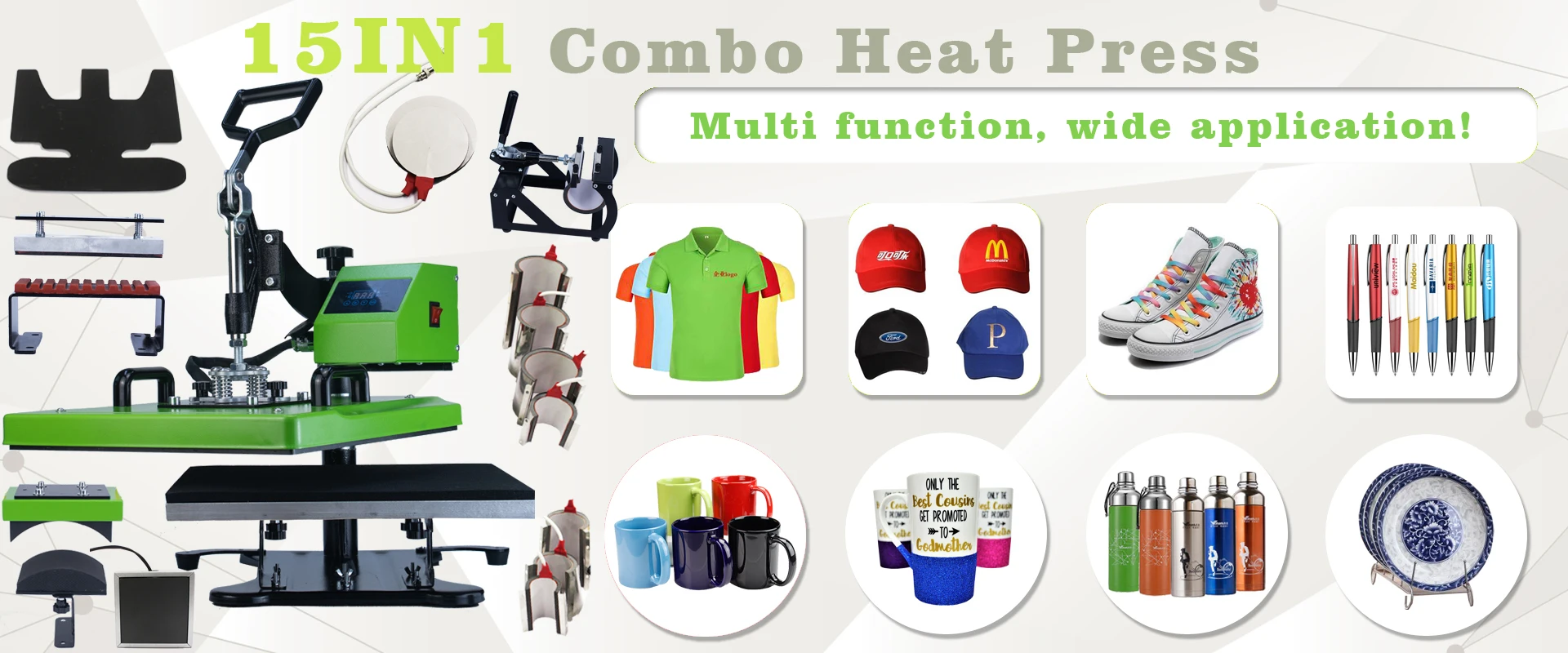 Heat Press Machine, sublimation consumables like ceramic mug, bottle, tumbler, t shirt, mouse pad, puzzle, sublimation paper, transfer paper, heat transfer vinyl, DTF printer set etc.
