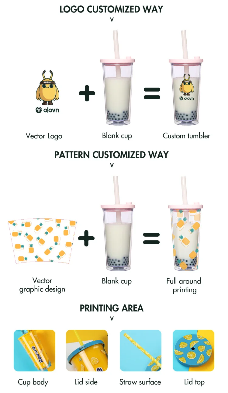 Оригинальные чайные стаканы с принтом на заказ 16 20 24 унции прозрачные многоразовые пластиковые