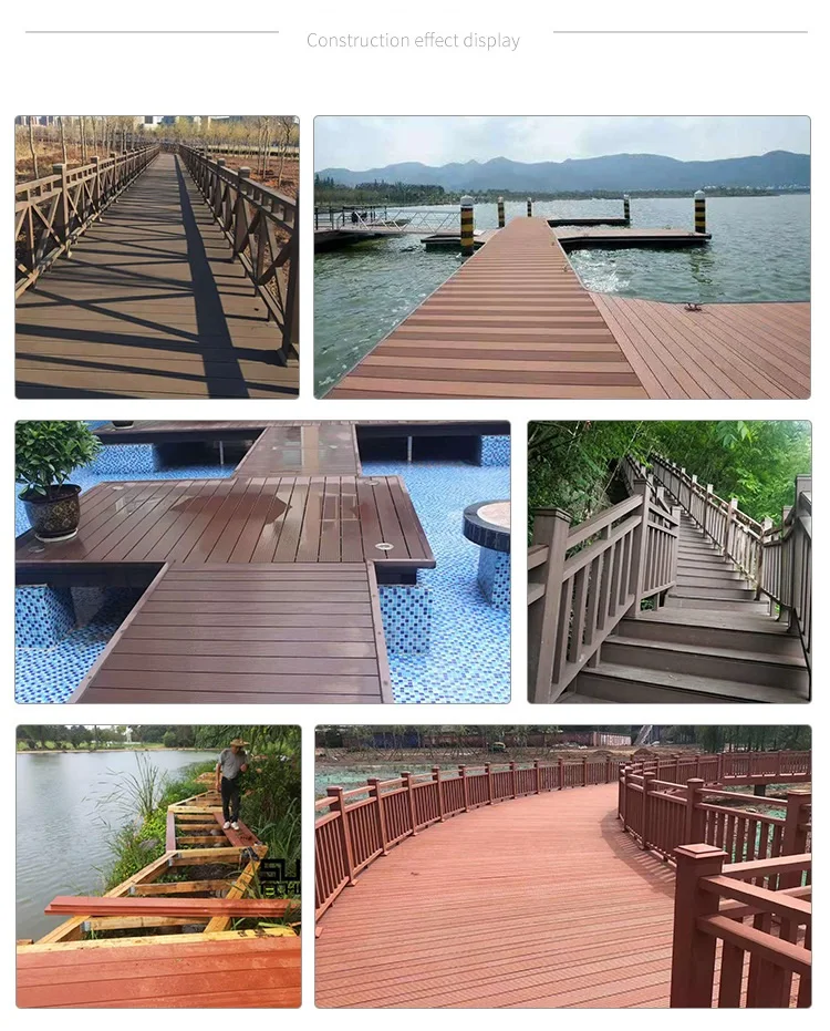 Looks and feels like natural wood·Durable,anti-impact ,wearproof ,with high density·High capacity of UV-resistance,and color stability. Highly resistant to moisture and termites·Easy to be installed and low labor cost·Requires no painting ,no glue,low maintenance.