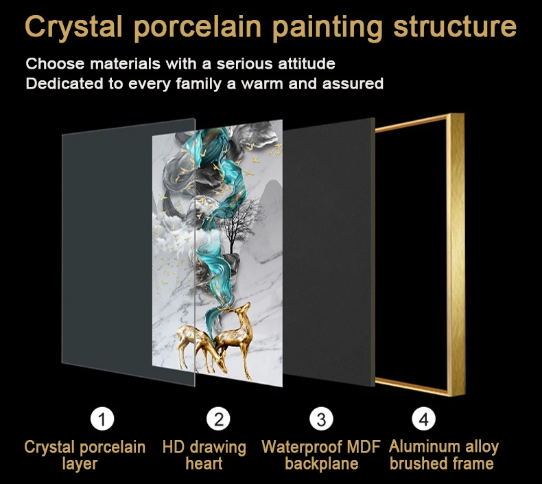 All kinds of crystal porcelain painting for home decoration. Such as single painting, porch painting, bedside painting, triptych, etc.