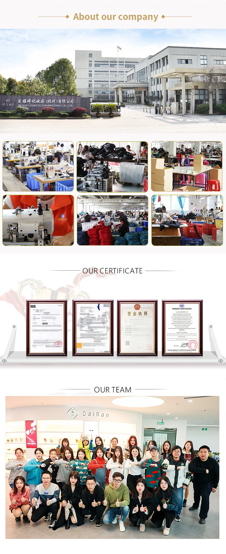 To make sure customer buy good quality product and service from us.Before customer place order, we will sent each samples to customer for approve.Before shipment, our staff will check quality 1pcs by 1pcs.Quality is our culture.