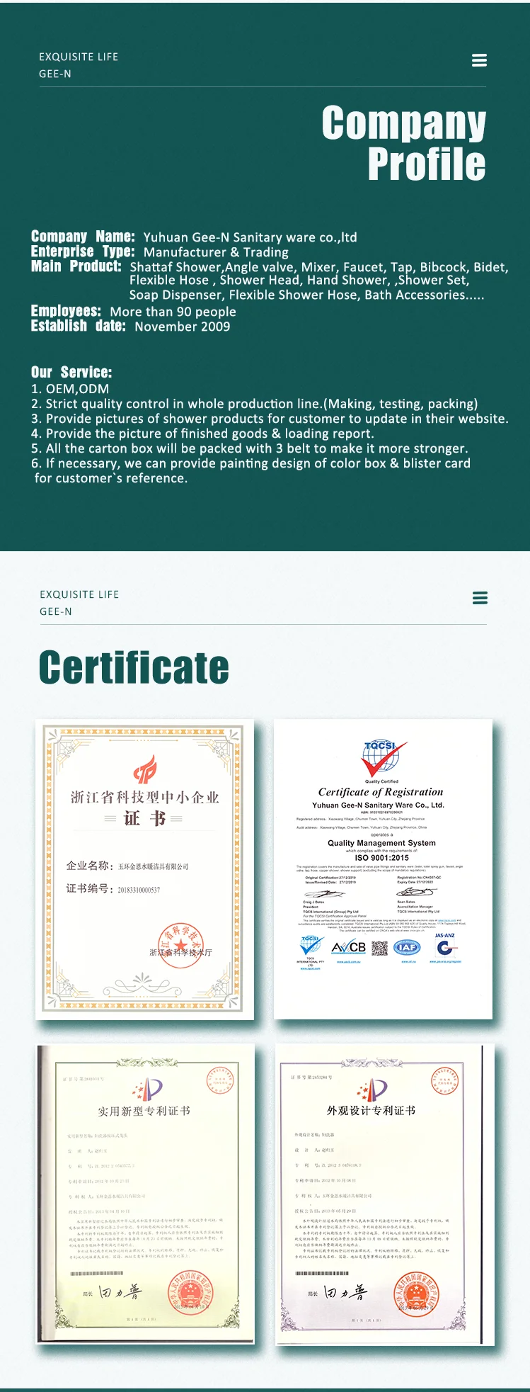 A: We have got the ISO9001 quality management system certificates.