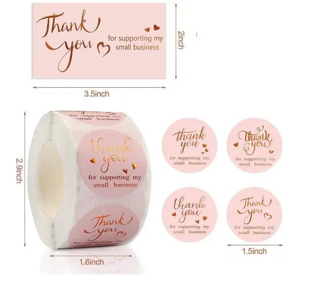 Наклейки металлические открытки с надписью thank you Глянцевая Золотая фольга на заказ визитница