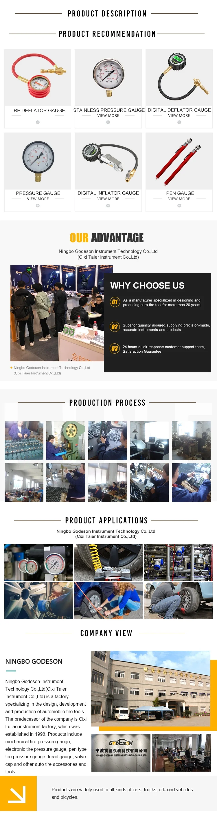 Q: Are you manufacturer or trader? A: We have been specialized in producing tire pressure gauges since 1999.
