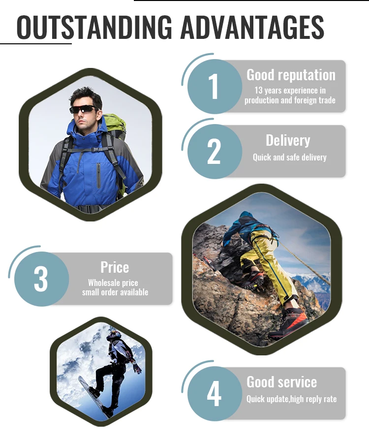(2) high quality which is suitable for both outdoors wears and casual clothing