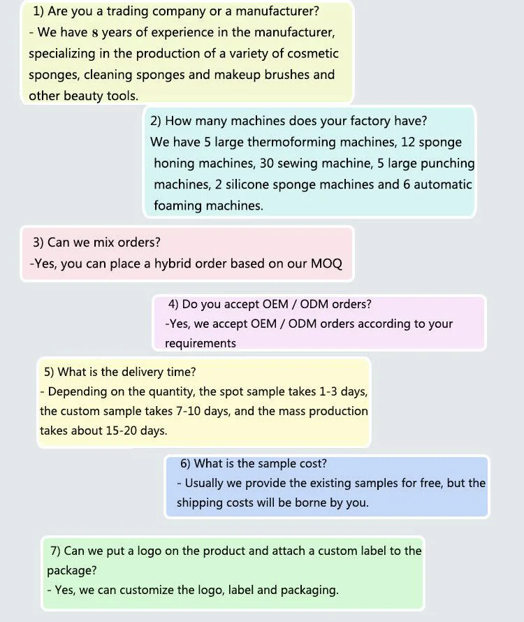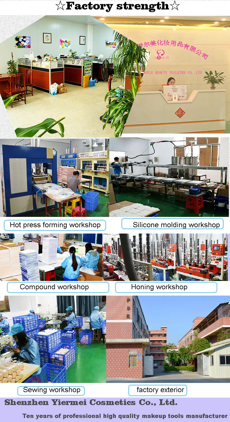 Shenzhen Yiermei Cosmetics Co., Ltd. was established in 2017, specializing in the production and sale of various cosmetic sponges, cleansing sponges, makeup brushes and other beauty tools. The products of the private label "YMXIANGHE" can pass the national quality inspection standards. The factory has a modern production workshop of 5,000 square meters. Since its establishment, we have always adhered to technology-led, strict quality inspection and perfect management system. Relying on the "professional team and perfect management system", the company adheres to the principle of "reputation, quality, service and efficiency" and has gradually grown into an excellent enterprise in the ever-changing economic tide. We constantly improve the management system, emphasize customer and market positioning, broaden the scope of services, improve service depth, and cooperate with customers for long-term, stable and win-win cooperation, and win the trust of enterprises. Support all customers.
