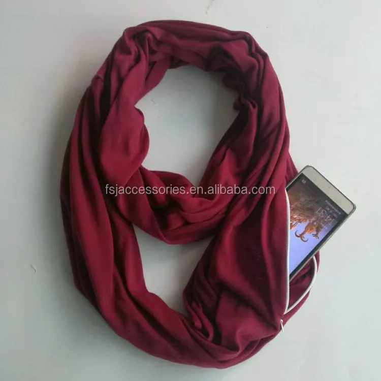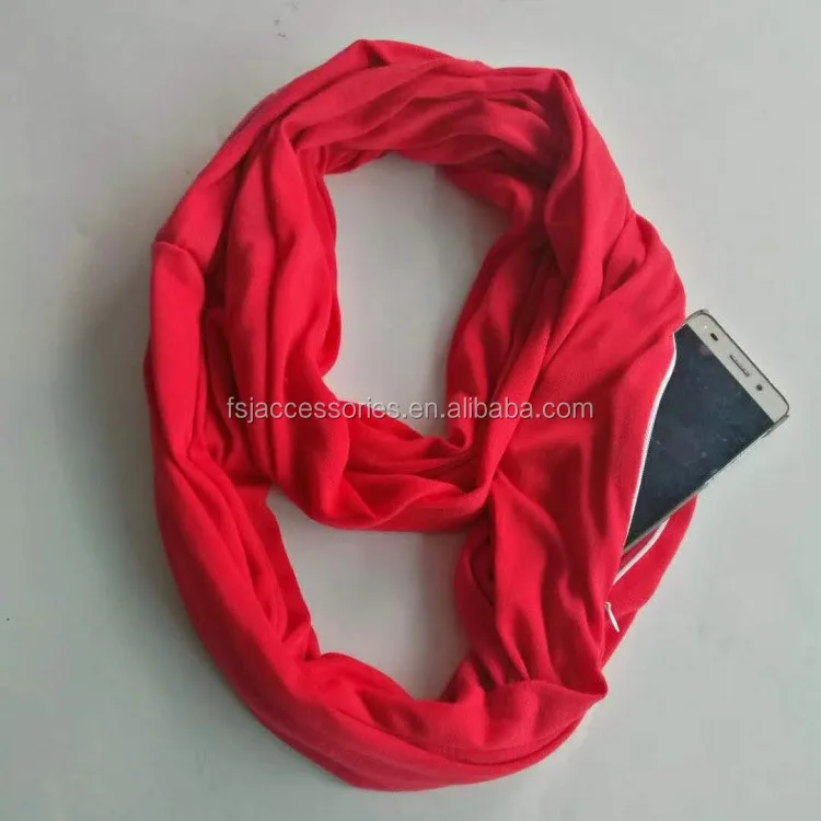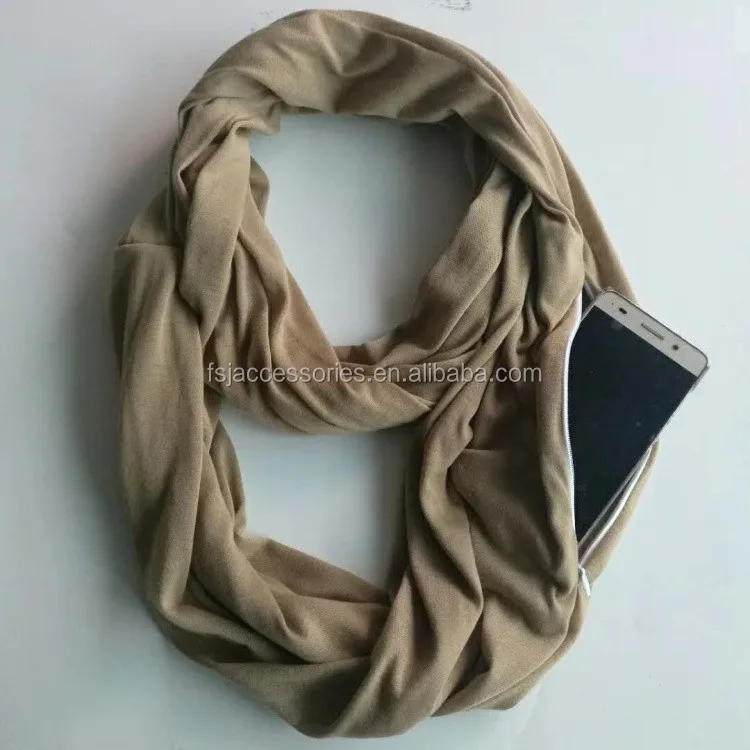 HZW-18011 Hot Sale Multifunctional Loop Women Scarf With Hidden Zipper Pocket Ladies Infinity Scarf