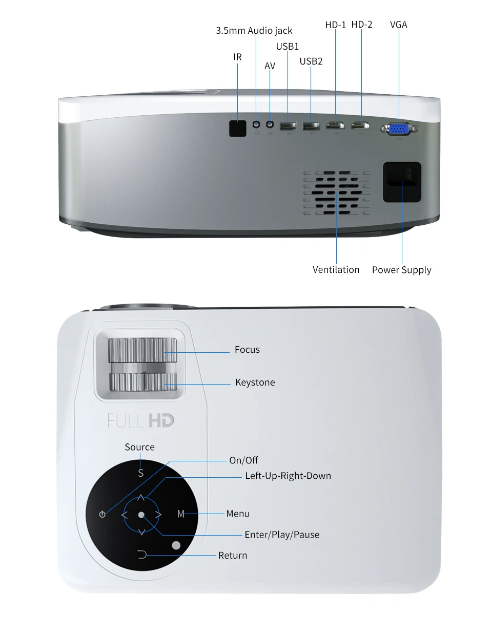 2. Adjustable screen size: The projector supports fixed-point zooming of the screen, allowing you to easily enjoy a private theater at home.