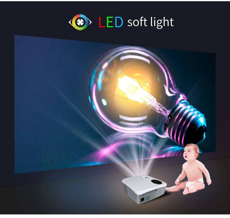 4. Diffuse reflection principle imaging: The diffuse reflection principle is used for imaging, the light does not directly enter the eyes, and the eyes of you and your children are protected. The LED light source is used, and it is not easy to fatigue the eyes when watching the drama for a long time.