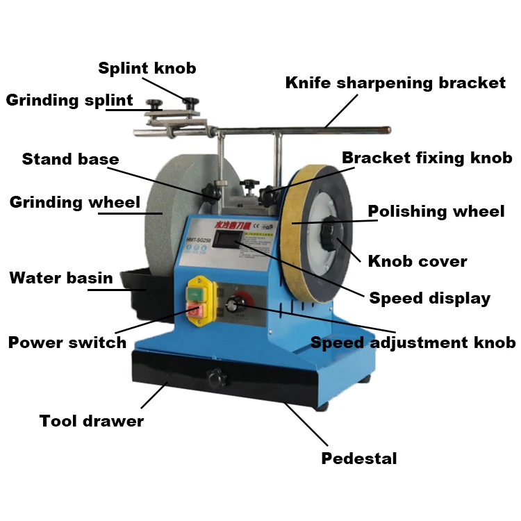 The water-cooled knife grinder has good heat dissipation conditions, fast heat dissipation, wide thickness of the grinding wheel and large contact surface, and the grinding tool is flat and smooth. The water mill can also reduce friction and wash away the fallen abrasive particles and debris. It can avoid rabbits or reduce the pattern and sub-shape of the workpiece, improve the accuracy and surface finish of the workpiece, and consume less grinding wheel, which greatly improves the durability of the grinding wheel.