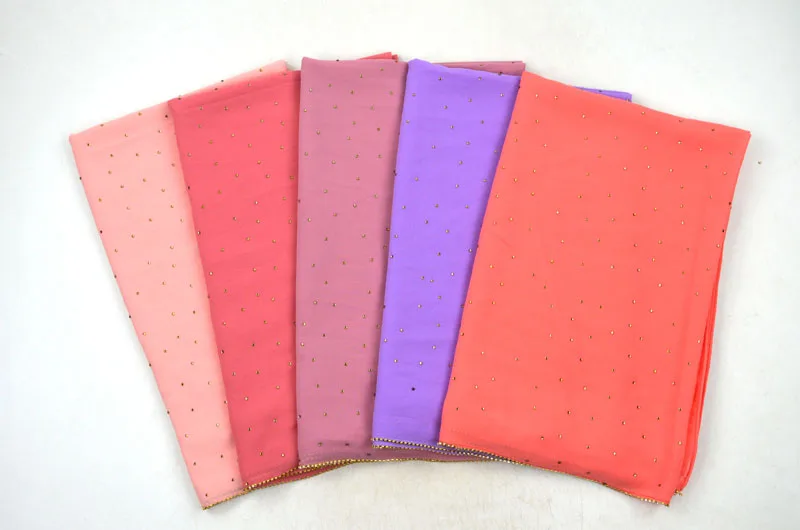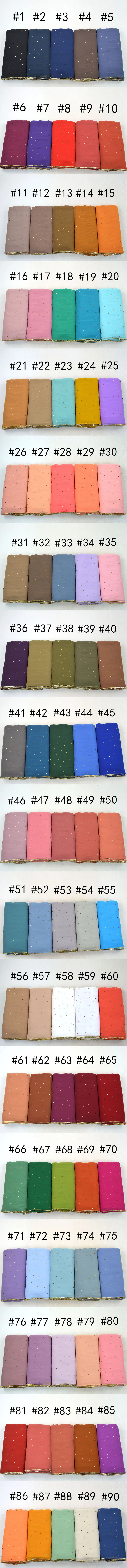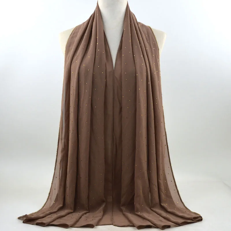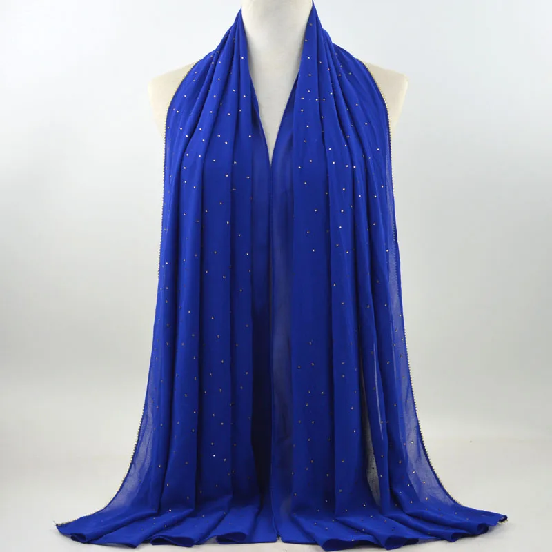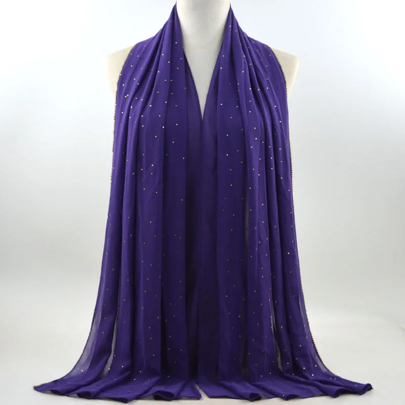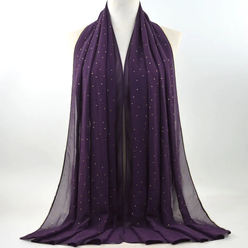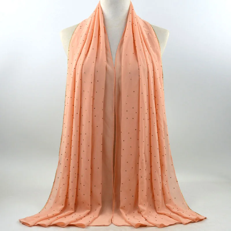 Plain Bubble Chiffon Hijab With Chain Diamond Glitter Rhinestone Muslim Long Head Wrap Shawl Scarves