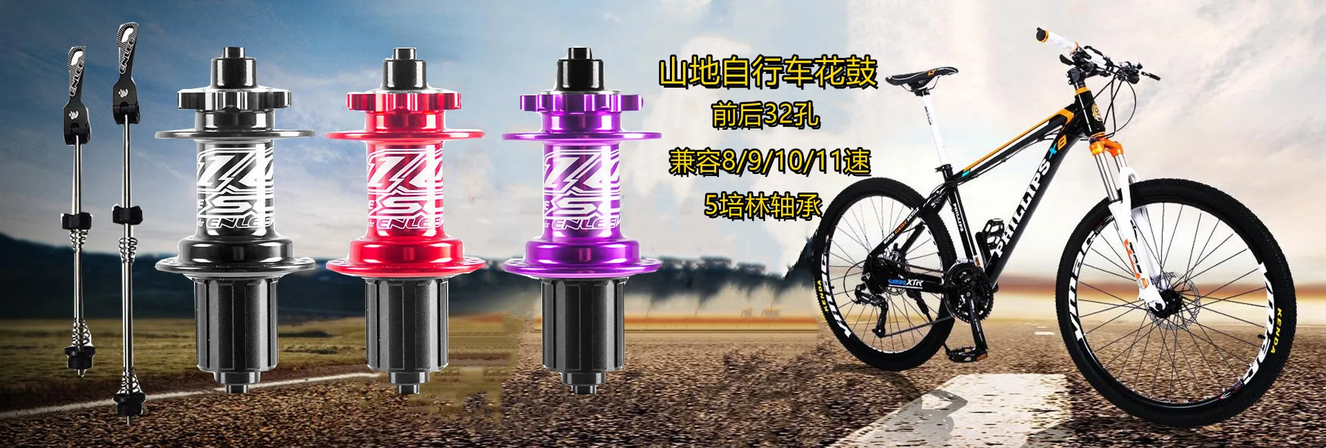 Rear hub: Aluminum forged CNC process, 135MM quick release, 2 bearing, net weight 415 grams, special silent grease treatment.