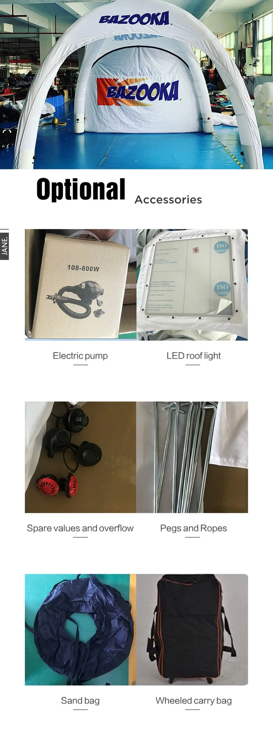 Package Includes: | Pins, Sandbag, Carry bag, Electric Air Pump. |