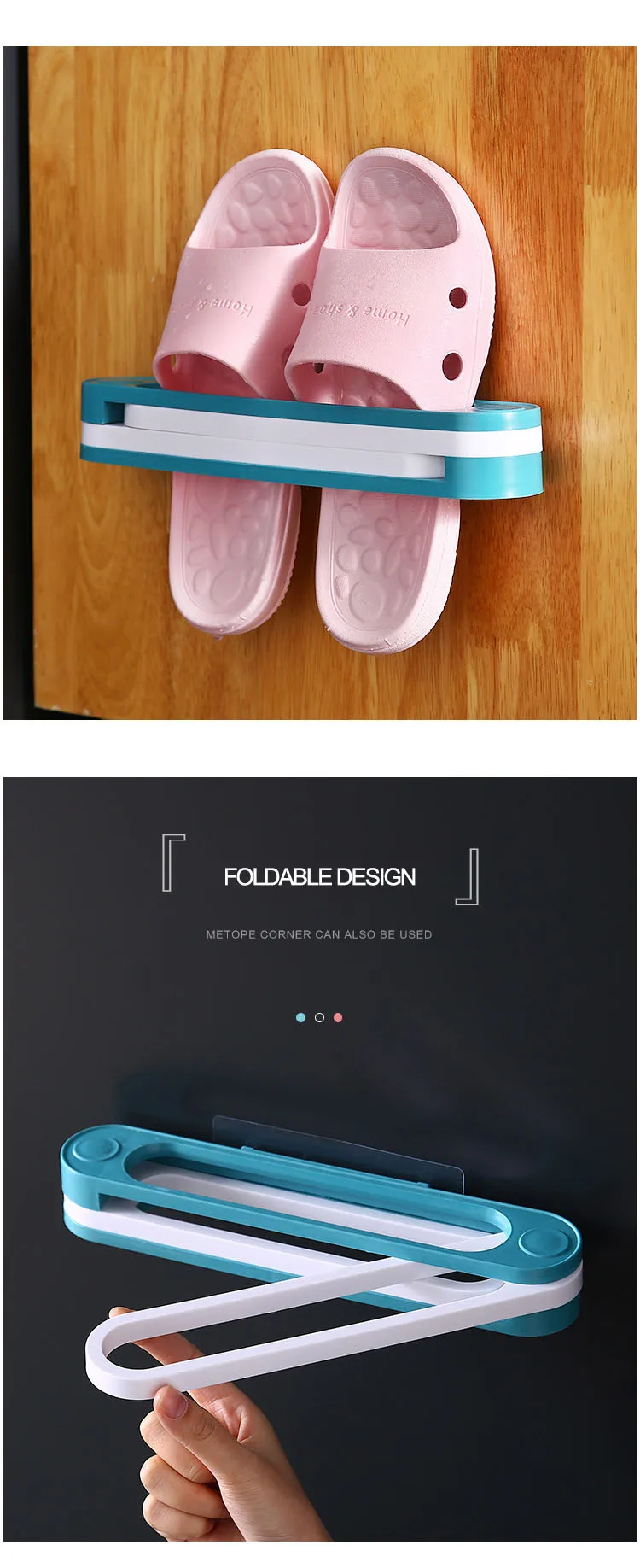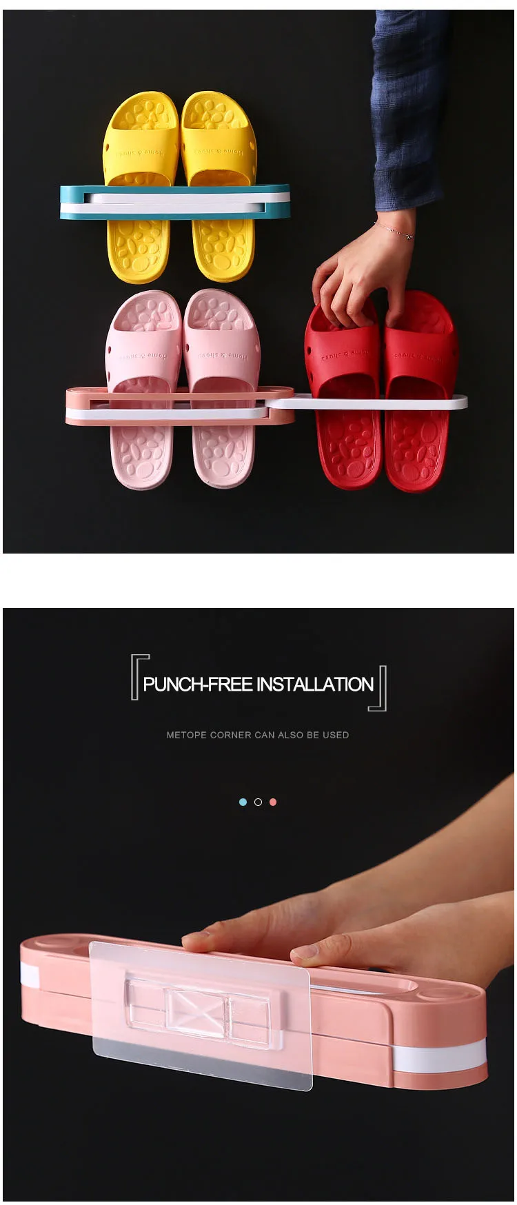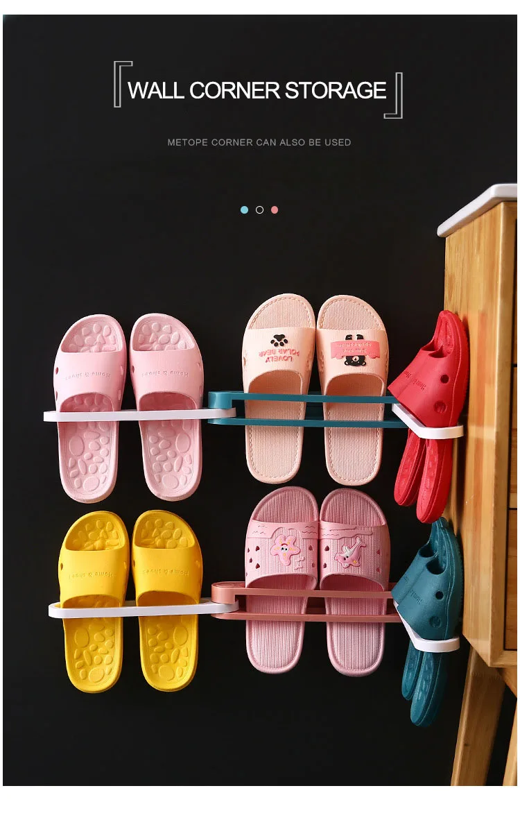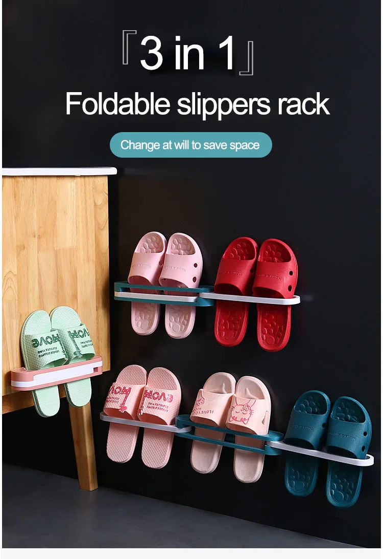 Description | 1.One Change Three Foldable Bathroom Slippers Frame Free Punching Bathroom Wall Drain Rack 2.No Holes Shoes Rack, No Damage To The Wall. Wall Corner Also Can Be Used, Can Make Full Use Of a Space. 3.Folding Design, Free Choice To Store The Quantity Of Shoe. 4.Can Be Used As Towel Rack. 5.Free Choice Of The Number Of Shoes To Store. 6.Easy To Be Installed And Used | |
