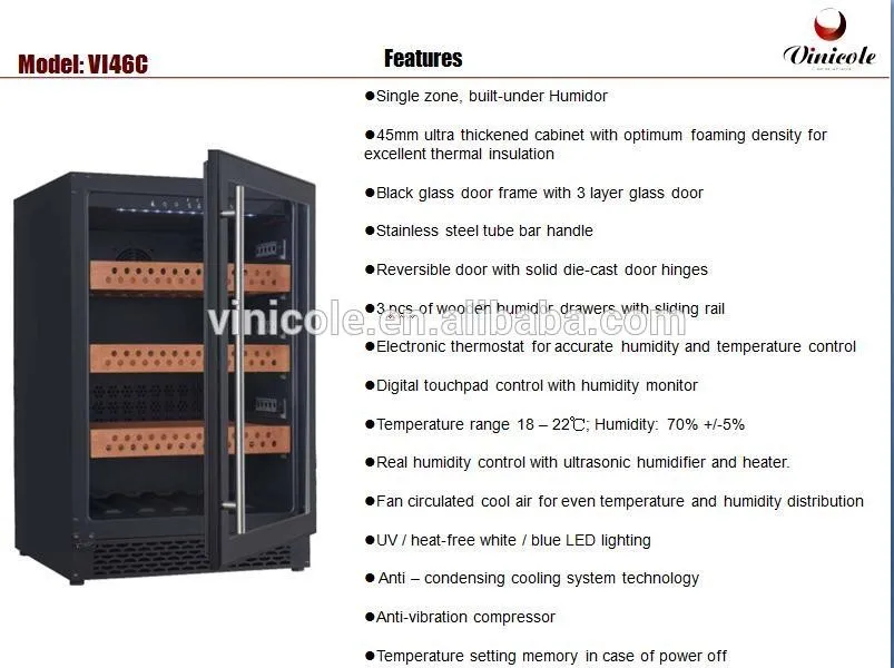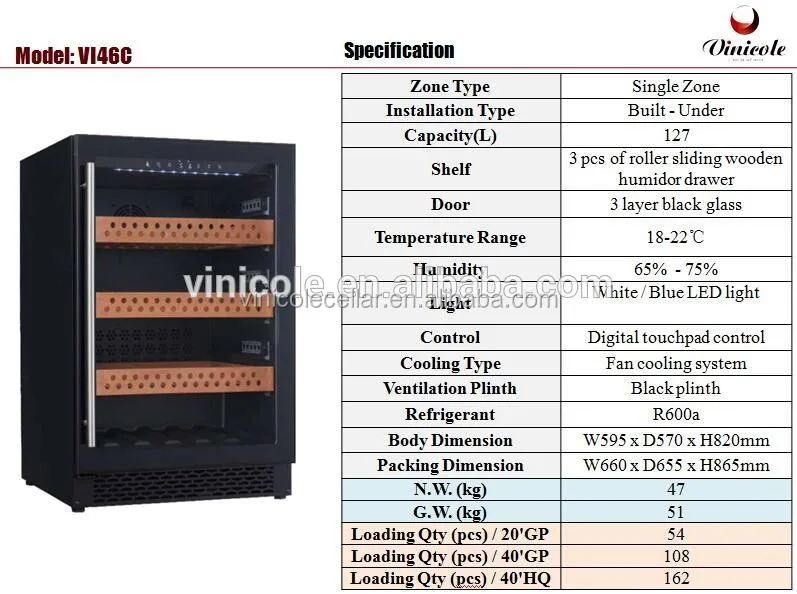 VI46S--0013 | 115V | security lock,charcoal filter,wooden finish cabinet | 127L |