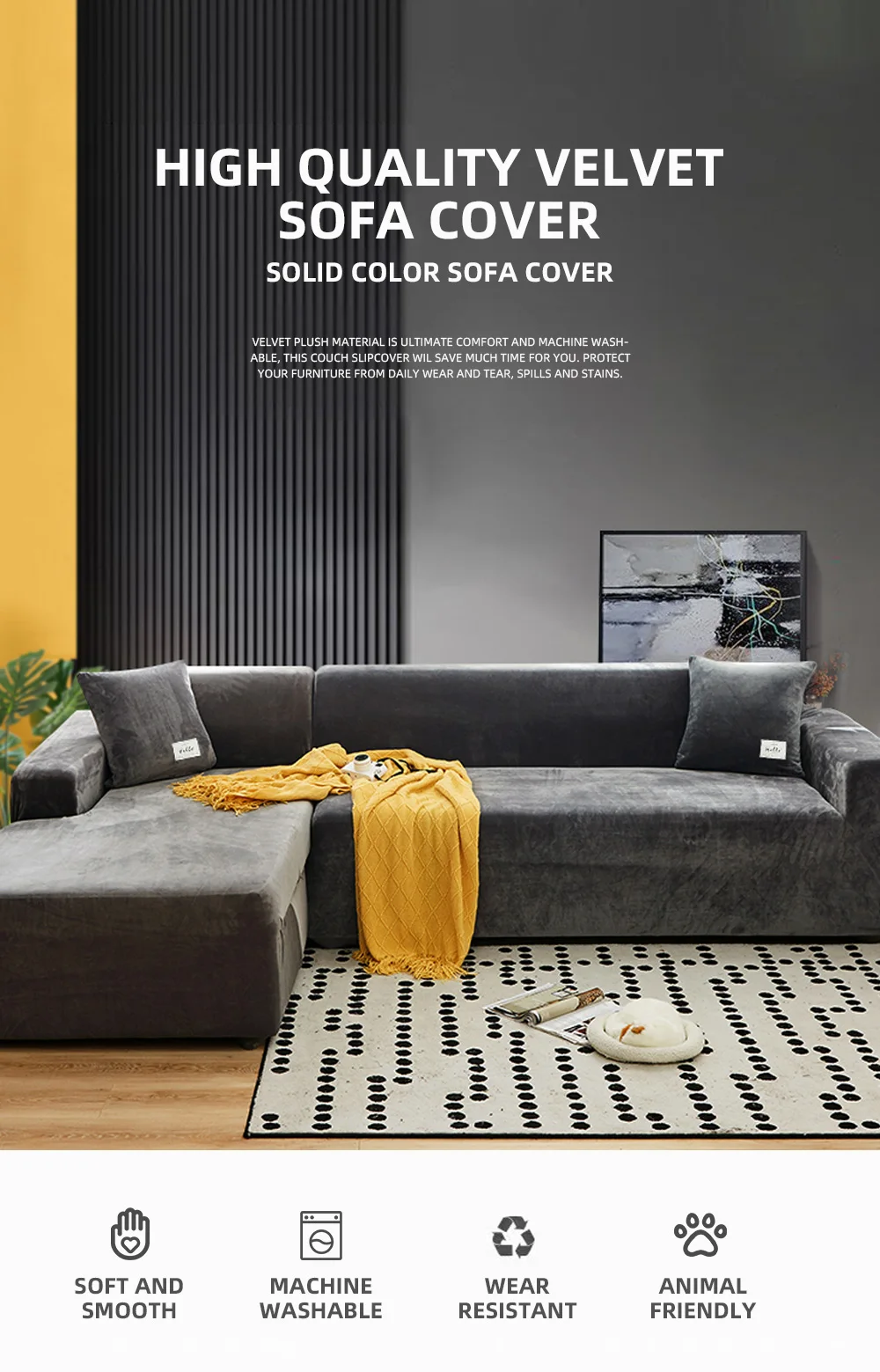 The sofa cover is made of soft stretchy material, the silky velvet is ultra soft to the touch, making it extra cozy and