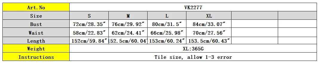 Size Chart of This Design