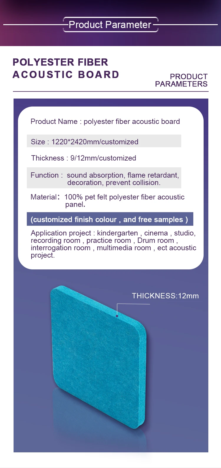 Product Name | Polyester(PET) acoustic panels |