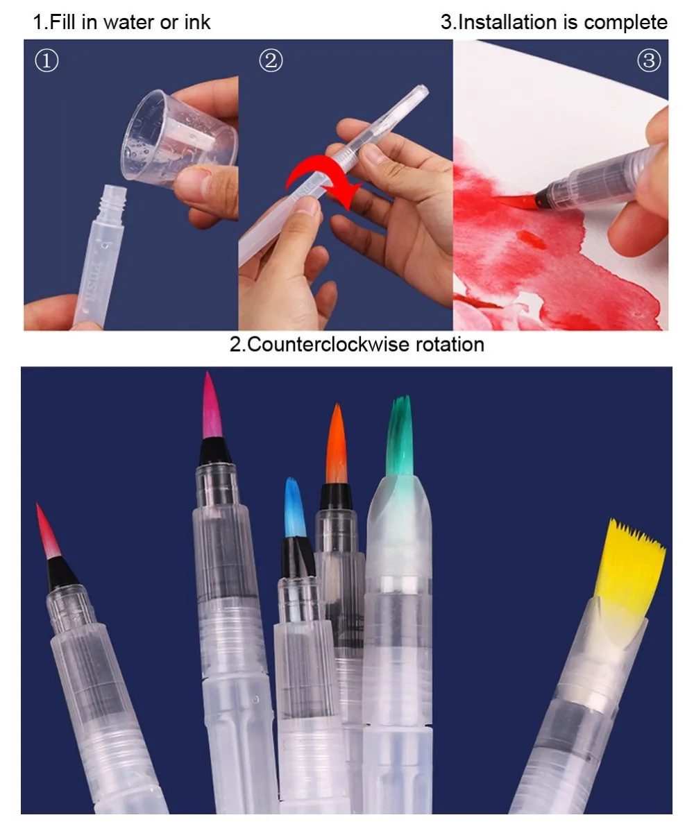 EASY TO USE:Simply to squeeze barrel to easily control the ink or water flow. To use, blend with water, add ink to barrel and enjoy! (Note: Please make the water less than 2/3 of the pen's volume when filling water into the pen)