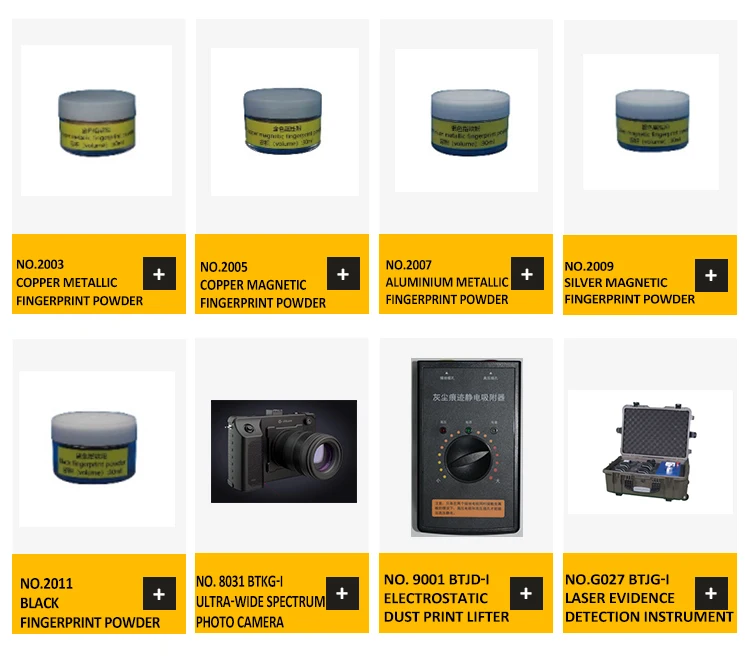3.What can you buy from us?Black Magnetic Fingerprint Powder,Fingerprint Lifting Tape,Fingerprint Cyanoacrylate Fuming Chamber,Electrostatic Dust Print Lifter,Crime Scene Latent Print Investigation Kit