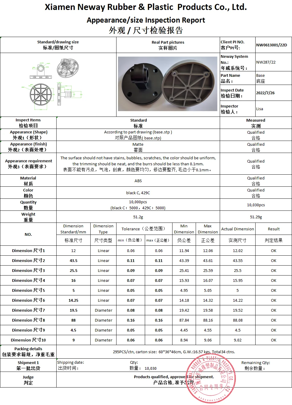 Mold Precision | If no special request, apply to SJ/T10628-1995 standards, class 3. |