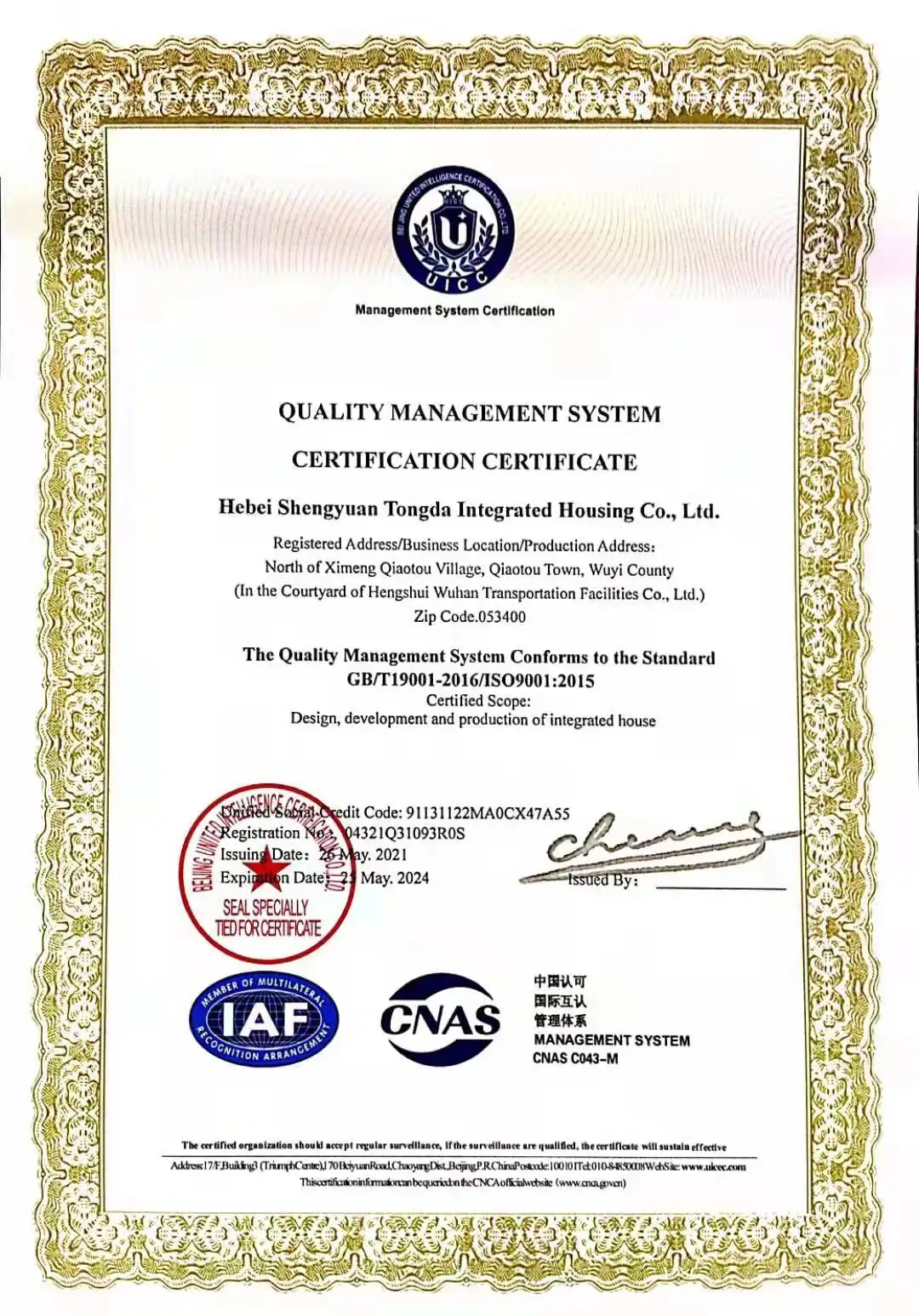 Established in 2016, Hebei shengyuantongda modular house Co., Ltd is located in Qiaotou Industrial Zone, Wuyi County, Hengshui City, Hebei Province, with a production workshop of 15,000 square meters, with a registered capital of RMB 10 million and more than 60 employees. The company is committed to the R & D, design, production, manufacturing, processing, sales, installation, international export trade and later comprehensive services of new integrated houses and supporting products.