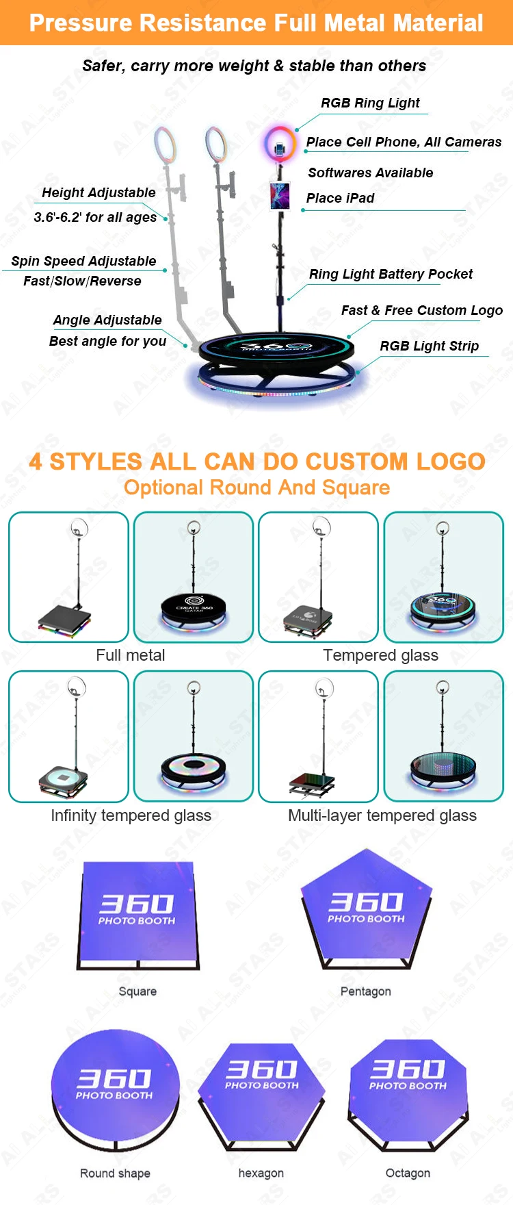 Foshan All Stars Lighting Electrical Co.,Ltd wasestablished in 2017.is an integrating develop- ment and production together touch electronic hi-tech company that concentrate with its uniquedesign and patent of 360 photo booth,mirror photo booth,selfie mirror,events photo booth,magic mirrordigital signagetouch table etc.Rossmine is a leading smart unmanned retail terminal software and hardware service innovation and creative enterprise,with strong research and developmentcapabilitywhere technology meets high fashion,Rossmines prod- ucts are developed with the most advanced technologies in LCD display technology,multi mediarepublishingtechnology,LCD bigsize splicing video wall technology.