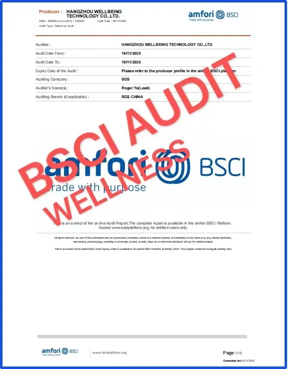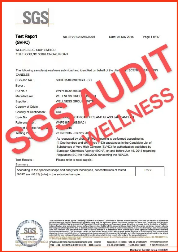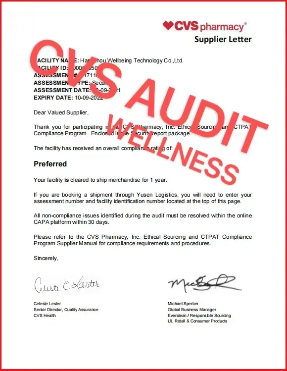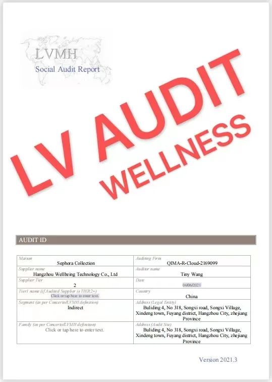 Wellness group pass LVMH, Target, inspection. We also own BSCI, CVS, USFDA, ISO etc certificate. We can provide any certificate by the third party that you requirement such as SGS or BV etc.