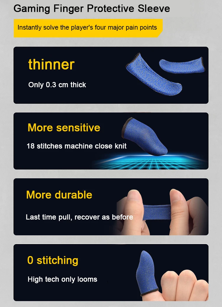 Product Name | Hot selling mobile gaming finger sleeve hand game touch screen professional breathable sweat-proof finger sleeve for gaming |