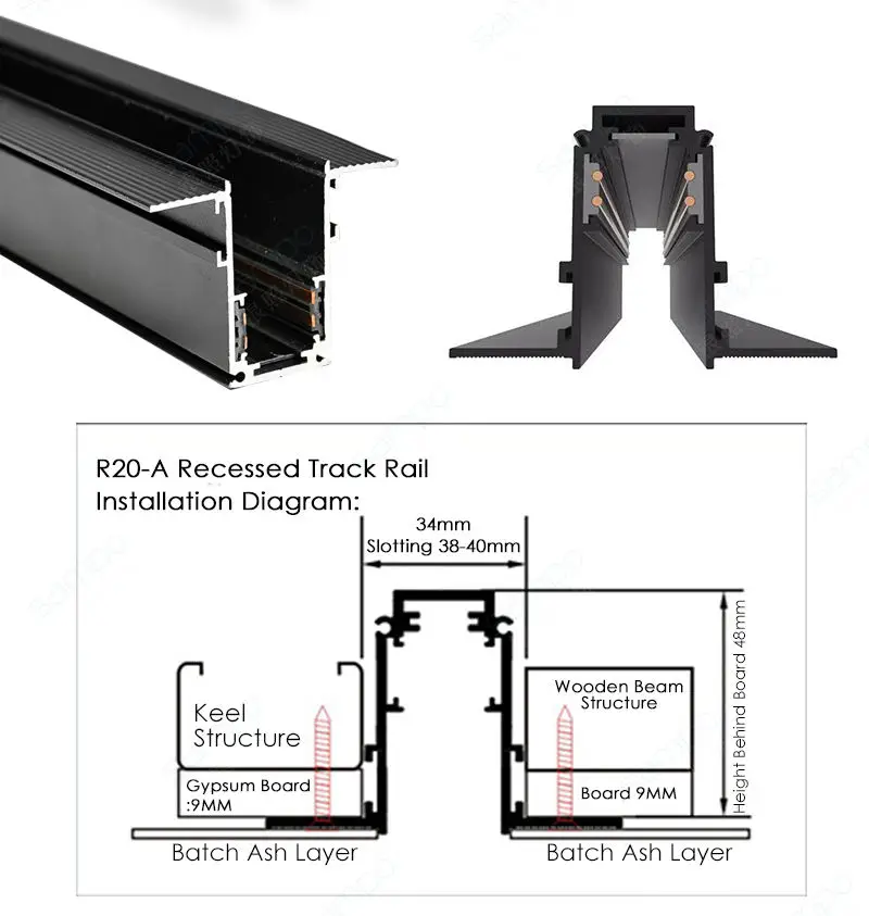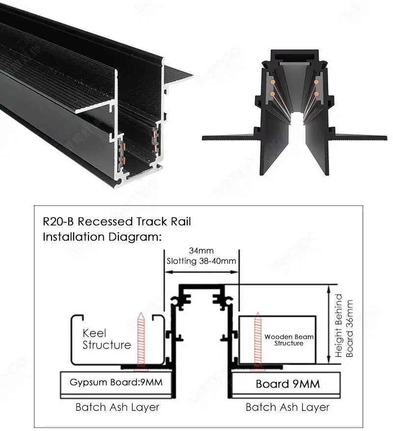 Recessed Track Rail | cut out38-40mm | MATTE BLK | 1M/1.5M/2M |