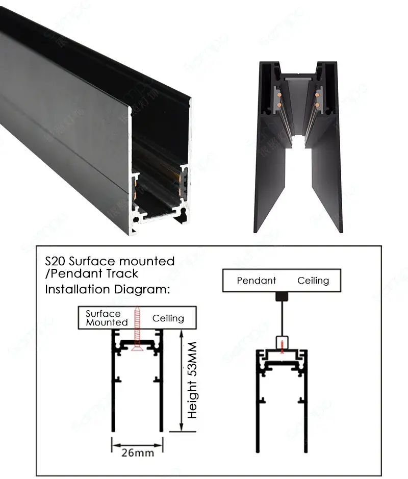 Surface Mounted Track Rail | MATTE BLK | 1M/1.5M/2M | |||