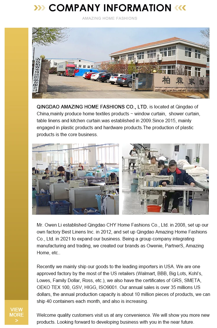 We are in Qingdao of China, started home textile business from 2001, mainly export l goods to North America and Europe.There are total about 101-200 people in our factory, our annual sales is over 35 million US dollars, the annual production capacity is about 10 million pieces of products.