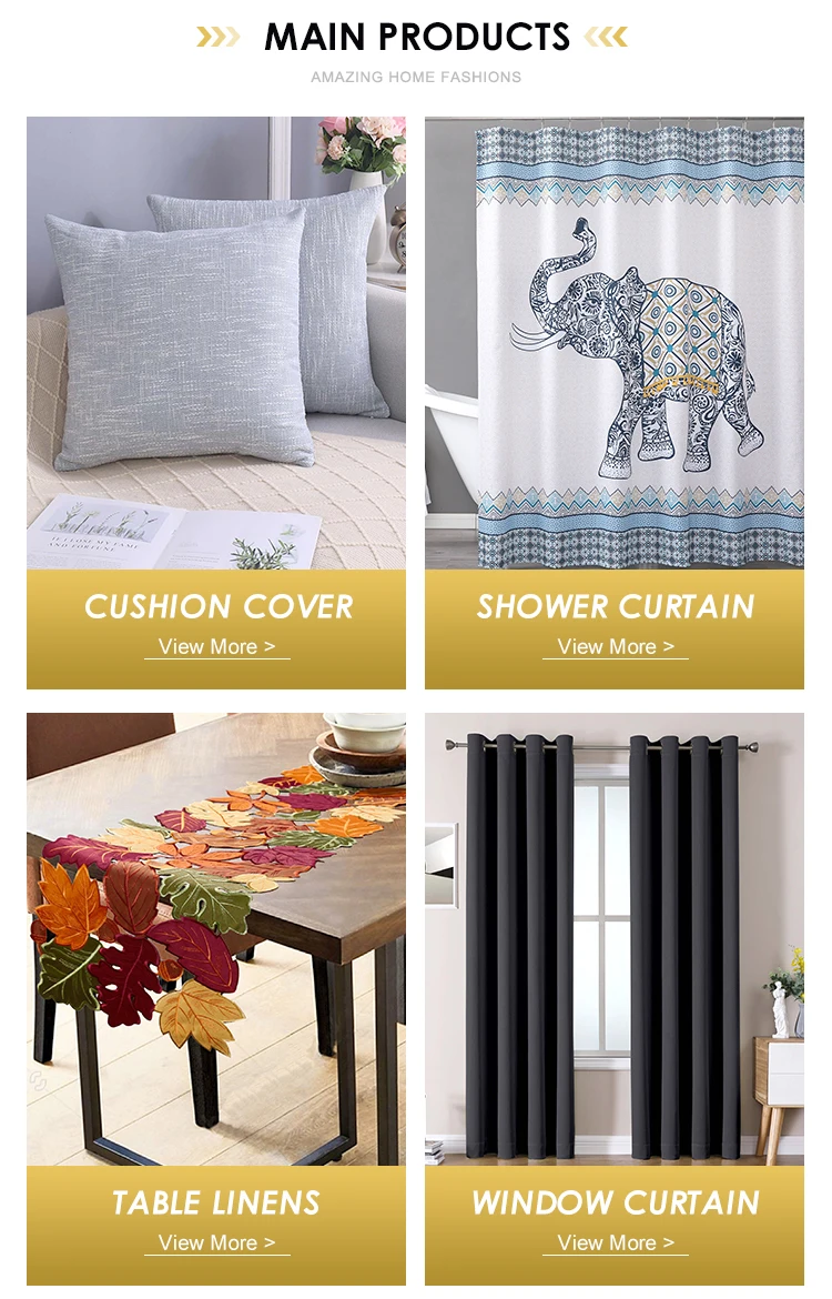 Window Curtain, Shower Curtain, Table Linens, Kitchen Curtain, Cushion.