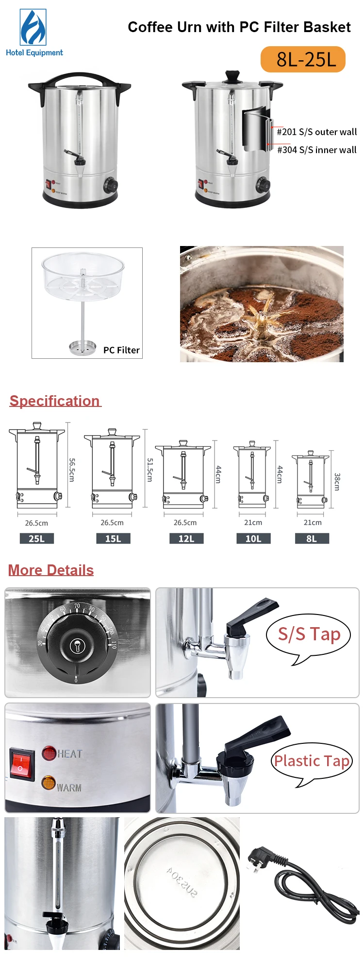 Material | Double wall #304 S/S for the inner wall #201 S/S for the outer wall PC Filter basket |