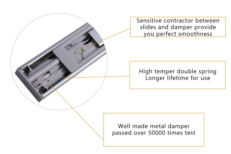 ITEM NAME | Full extension side mounted telescopic concealed ball bearing damper drawer runners | ITEM NO. | DY4507SN-06 |