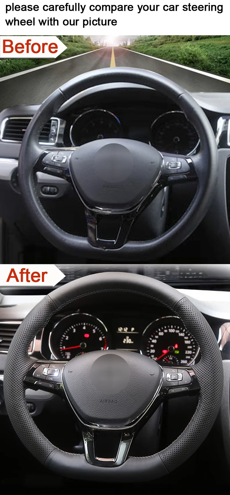 1. Please double check that your car steering wheel is the same as our picture. If the same, you can buy it. If not, provide your steering wheel picture to customer service.