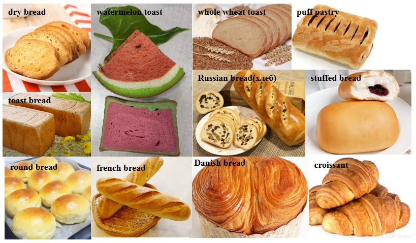 1. Production range as pastry, Stuffed bread, bun , toast, baguette, loaf ,sticks and other customized bread.