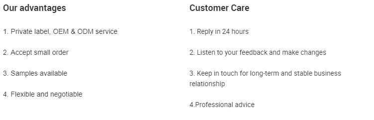 Advantages | 1. High quality ingredients and strict QC 2. Professional R&D team and 5-star service 3. Large production capacity and fast delivery 4. Factory price: Offer EXW price, FOB price and CIF price, or according to clients' requirements |