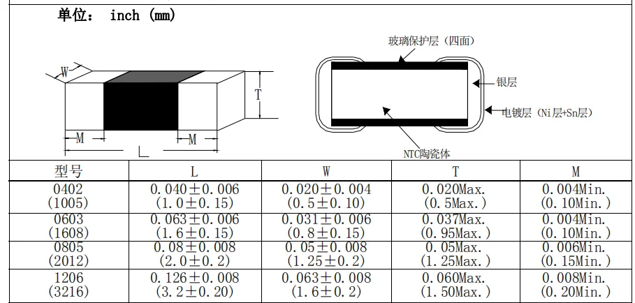 Range of Beta Value (B25/50℃) | 3950k, (Customized: 3100 ~ 4500 k) | |||||||||