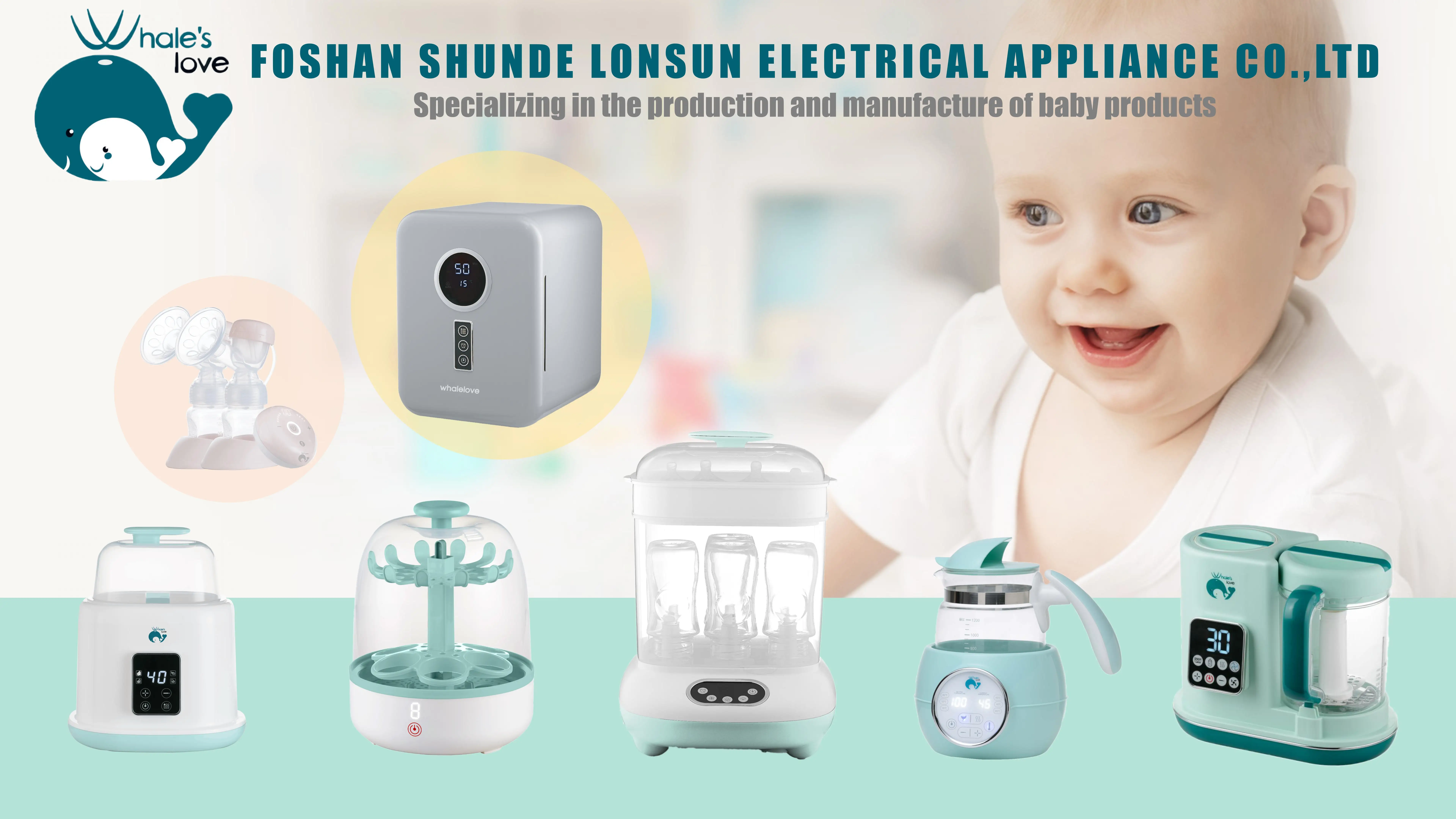 Lonsun is specialized in baby electrical appliance, such as baby bottle warmer, bottle sterilizer, UV sterilizer, breast pump, food processor and water warmer