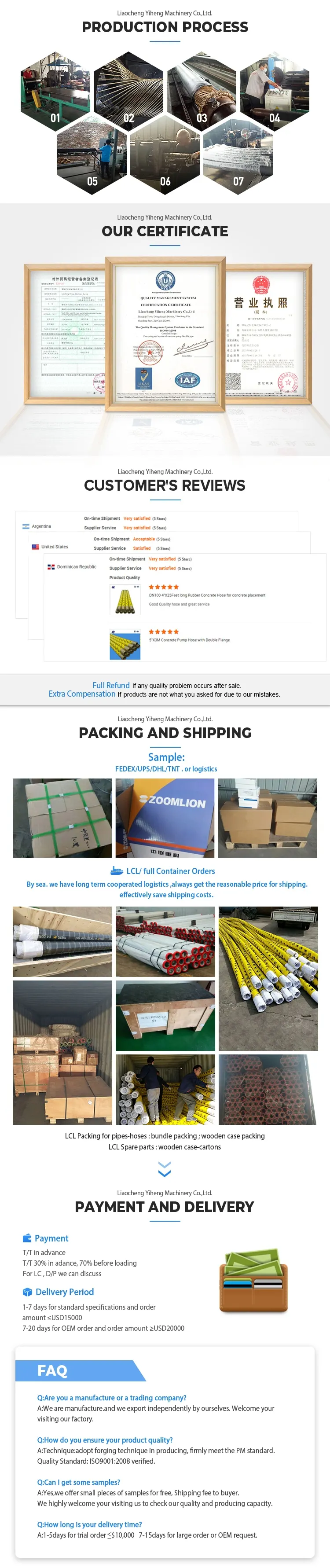 We offering related all concrete pump spare parts and pipelines .
