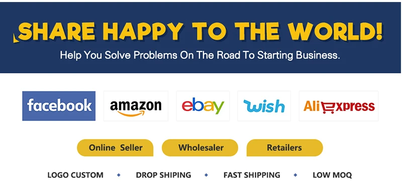 We can help you design for free, low minimum order quantity customization, free warehouse and competitive ship fee for , dropshipping, etc.