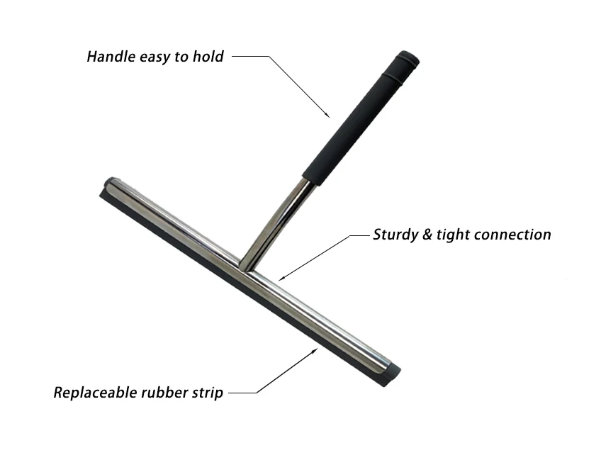 This elegant T-shape bathroom squeegee is made from high quality stainelss steel, zinc alloy and rubber. The handle is easy to hold, which make window or mirror cleaning more convinient ! The replaceable rubber blades is durable with precise edge. Our bathroom squeegee products are not only shiny and modern, but also rust free and durable, which make our household lives easier and happier!