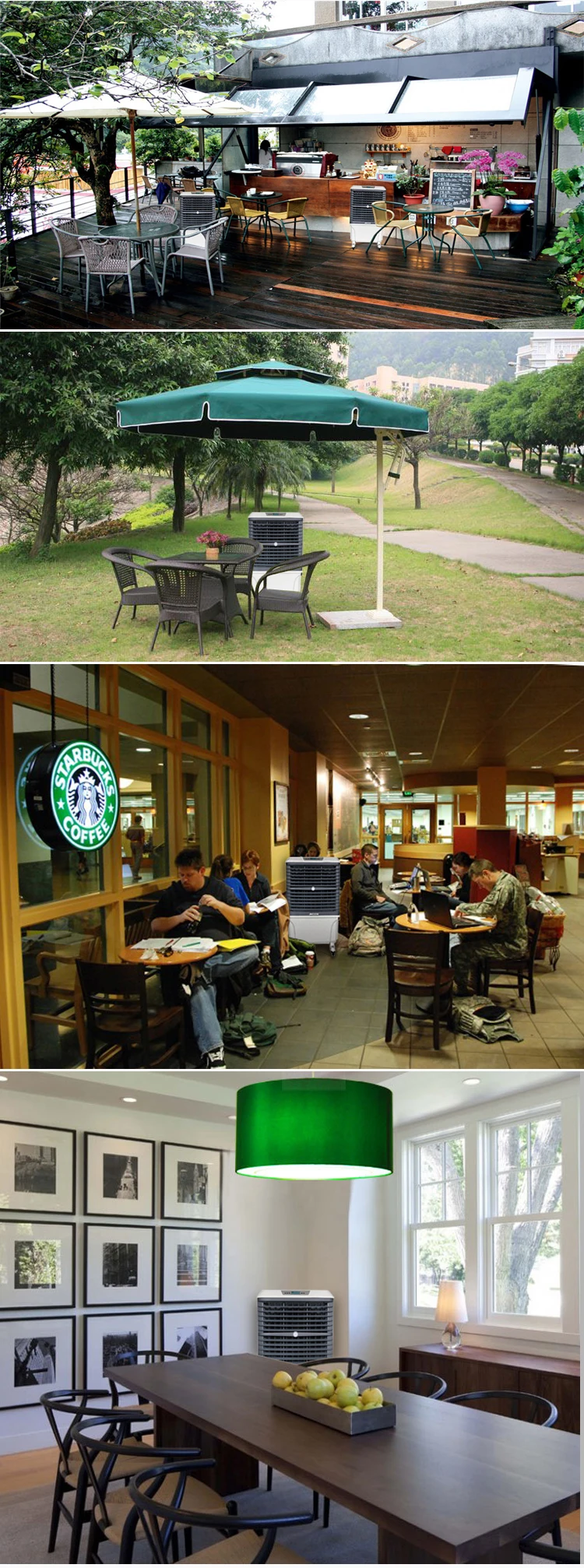 Mobile air conditioner is especially well suited where the air is hot and humidity is low. However,in higher humidity areas there are many proven cost effective uses for evaporative cooling that make it the right choice,like poultry farm, industrial plants, commercial kitchens,laundries,dry cleaners,greenhouses,spot cooling etc.
