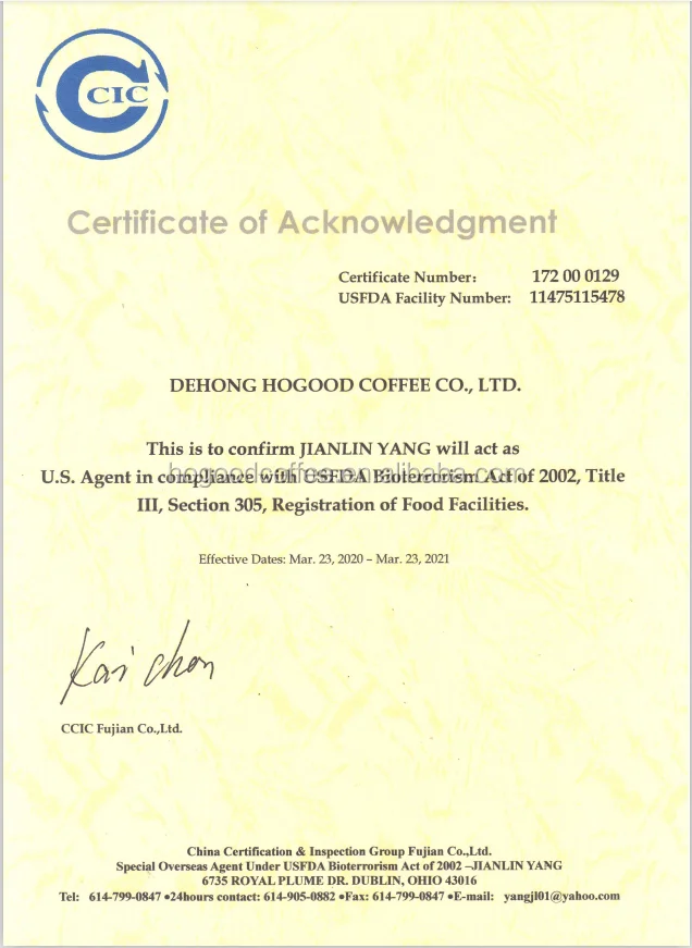 Appearance: Brown uniform particles; Flavor: Obvious fragrance, obvious acidity, fine solubility; Drying Method: Freeze Dried; Package: Bulk packing, 25kg/carton with polybag inside, 300cartons/20ft container, 750cartons/40ft cartons; Origin: Mangshi city, Yunnan, China; Caffeine: 2.5~3.2