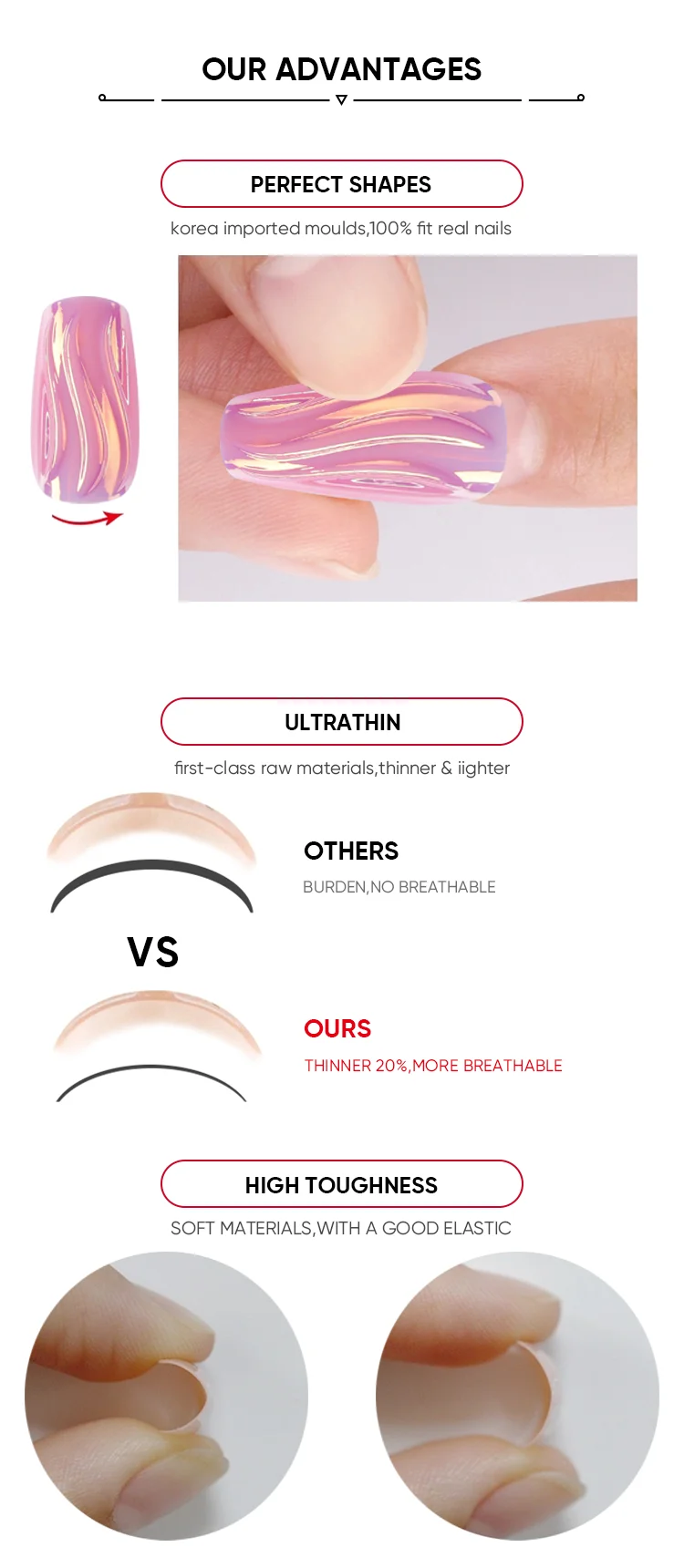 Advantage | We are specialized in the production of artificial plastic false nail, nail accessories, and accept all custom design |